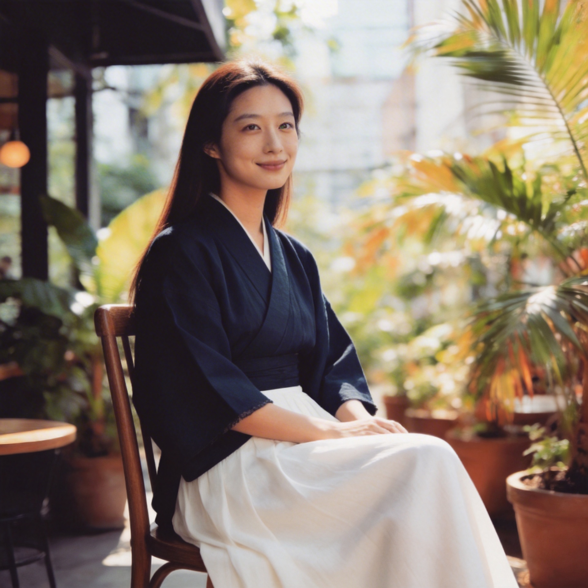 Ink Navy Side ProfileA calm Japanese-inspired look built around profile, softness, and measured contrast.